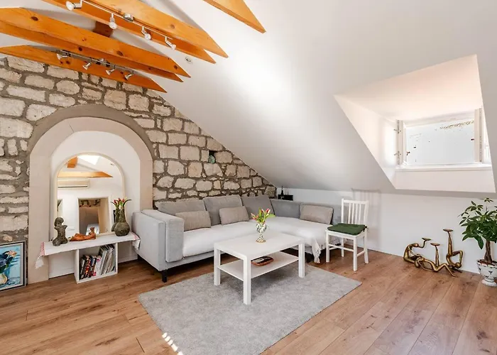 Le Centre historique se trouve près de l'appartement, tandis que le Palais Sponza est à 50 mètres. Il faut 5 pour se rendre au centre de Dubrovnik. La Plage de Sveti Jakov est à 2 km.